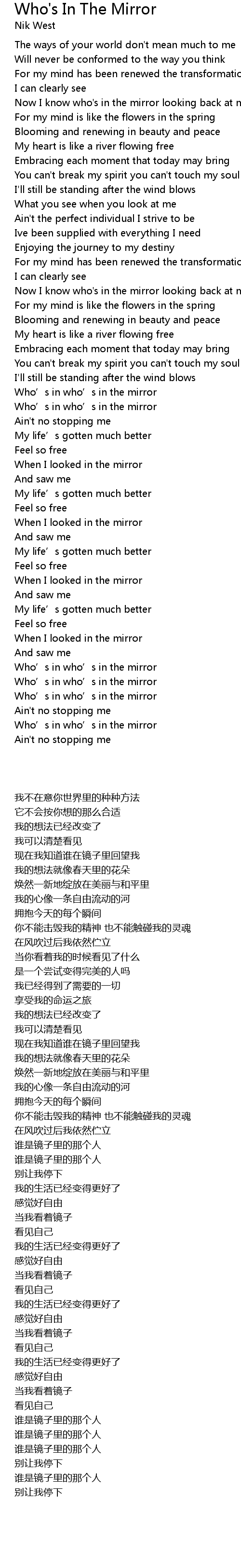 | [01:53.416] | Who' s in who' s in the mirror |