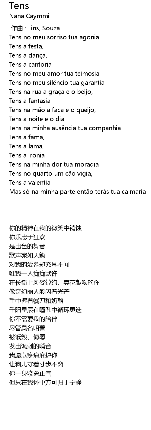 | [00:54.80] | Tens no meu sil ncio tua garantia |