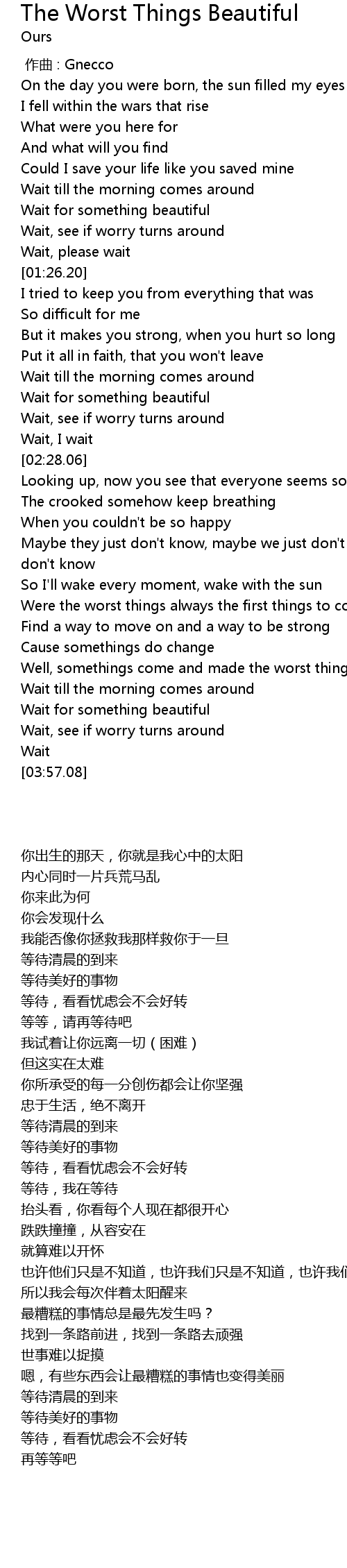 | [03:39.52] | Wait for something beautiful |