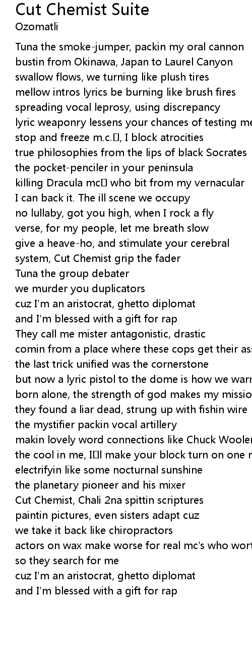 | Cut Chemist, Chali 2na spittin scriptures | |