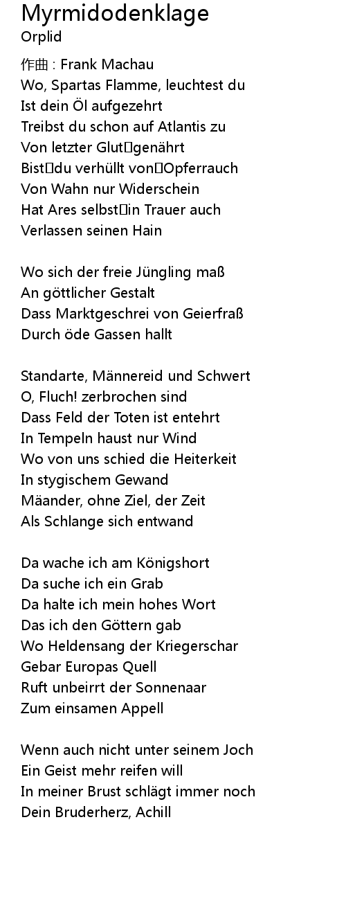 | Song | Myrmidodenklage |