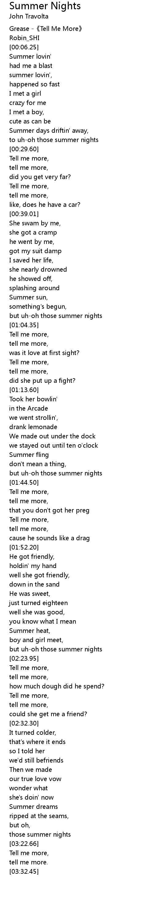 | [00:02.25] | Grease -《Tell Me More》 |