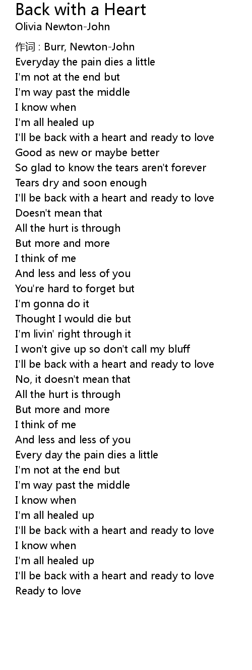 | Song | Back with a Heart |