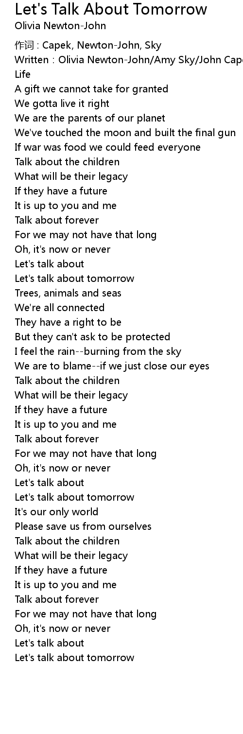 | Let' s talk about tomorrow |
