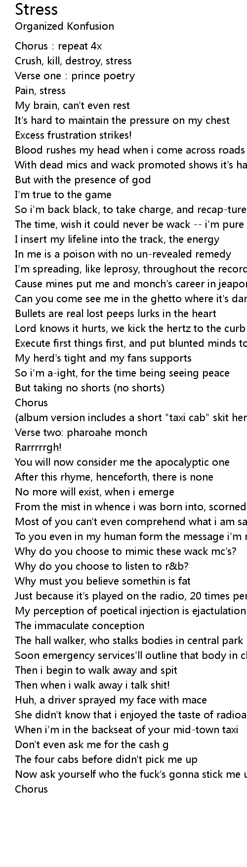 | Crush, kill, destroy, stress | |