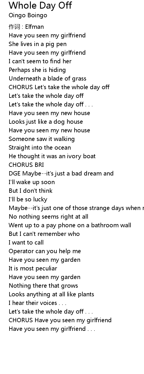 | CHORUS Let's take the whole day off | |