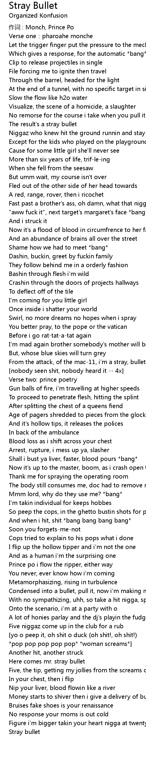 | From the attack, of the mac11, i' m a stray, bullet | |