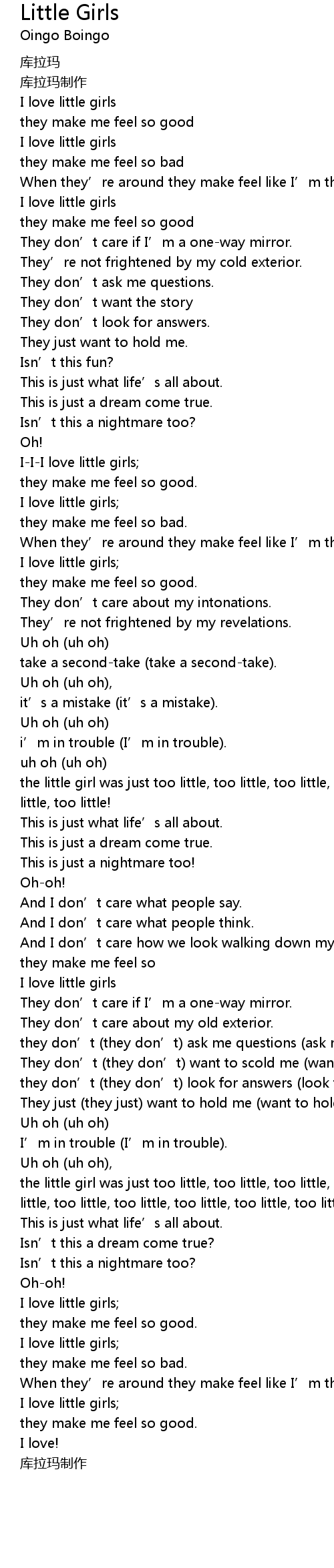 | [01:49.83] | the little girl was just too little, too little, too little, too little, too little! |