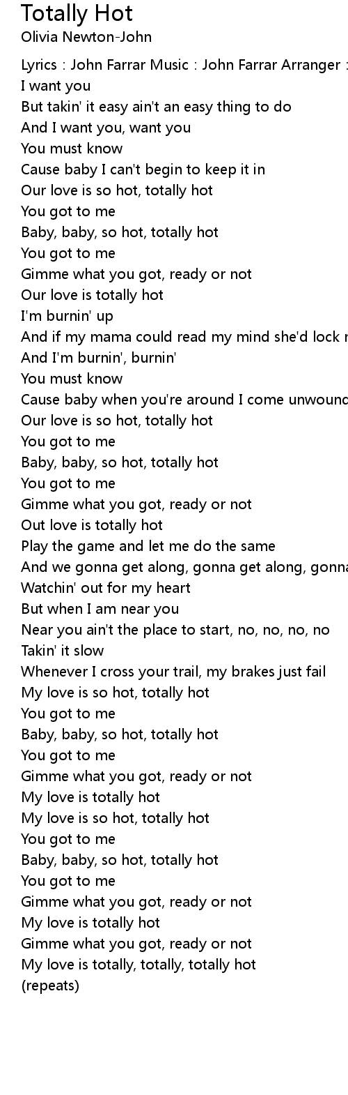 | Baby, baby, so hot, totally hot | |