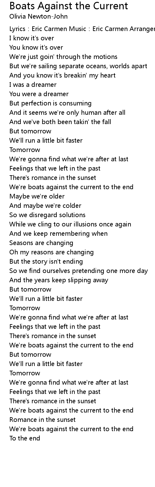 | Song | Boats Against the Current |