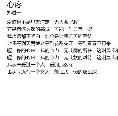 | 喔 你的心内 我的心内 无共款的对待 这咁是我的无奈 | |