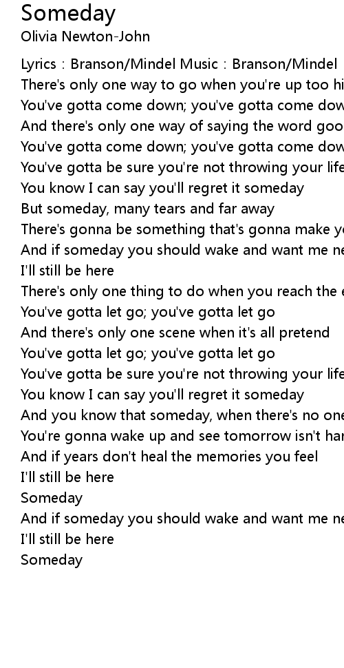| And you know that someday, when there' s no one sleeping on your mind | |
