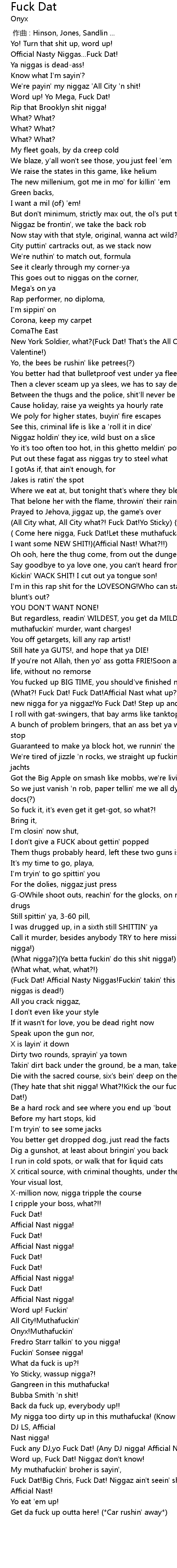 | [03:17.12] | (Fuck Dat! Afficial Nasty Niggas!Fuckin' takin' this streets! That niggas is dead!) |