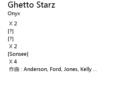 | [00:00.00] | 作曲 : Anderson, Ford, Jones, Kelly ... |