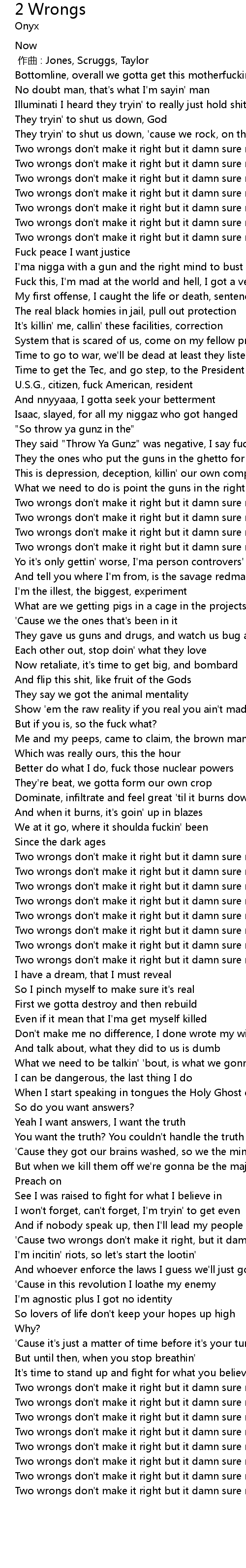| [01:14.53] | Two wrongs don' t make it right but it damn sure make us even |