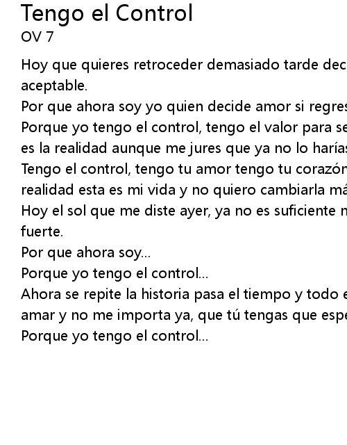 | Porque yo tengo el control... |