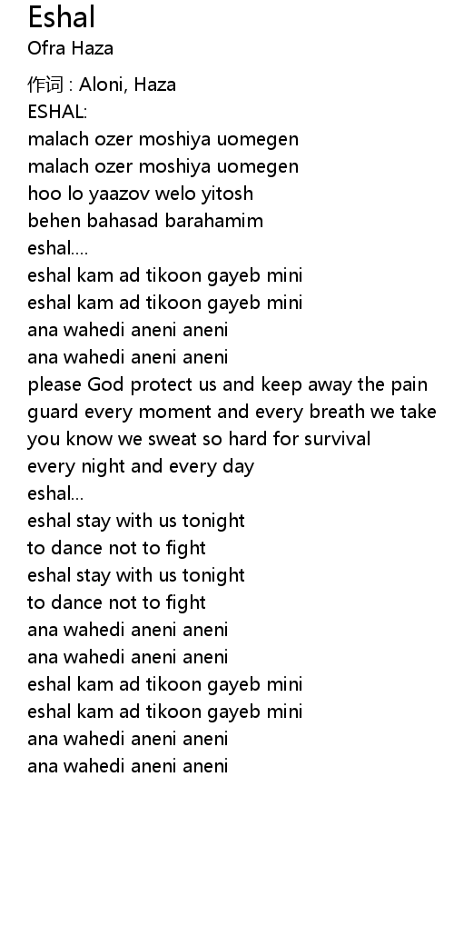 | 作词 : Aloni, Haza | |