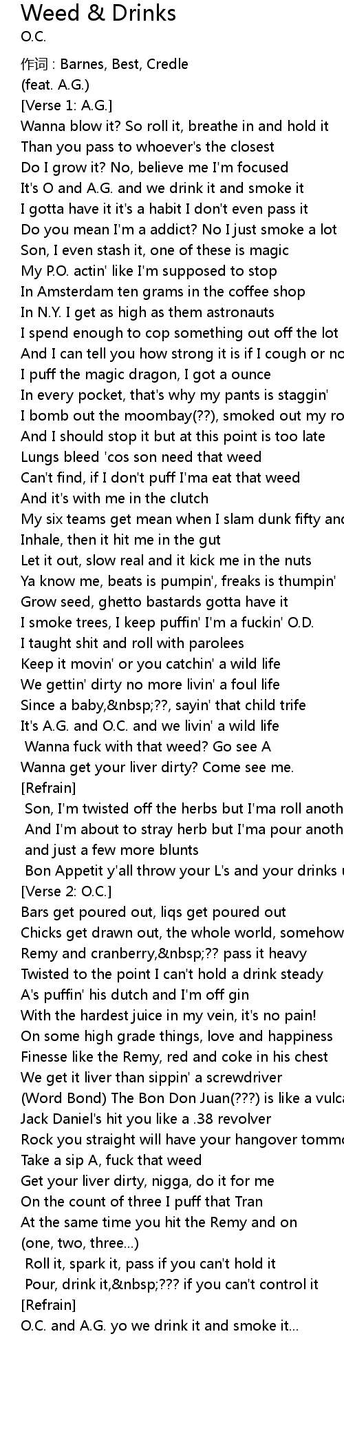 | O.C. and A.G. yo we drink it and smoke it... |