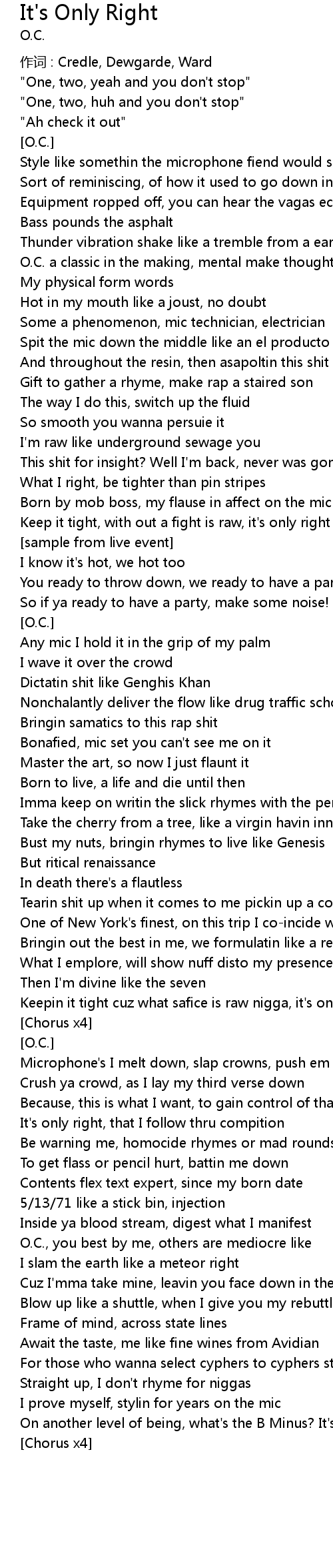 | Keep it tight, with out a fight is raw, it' s only right | |