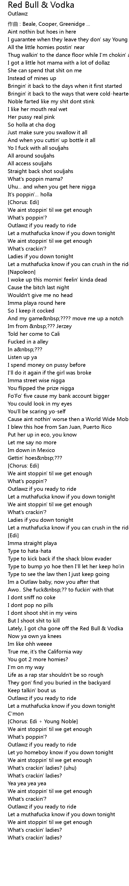 | Lately, I got cha gone off the Red Bull Vodka | |