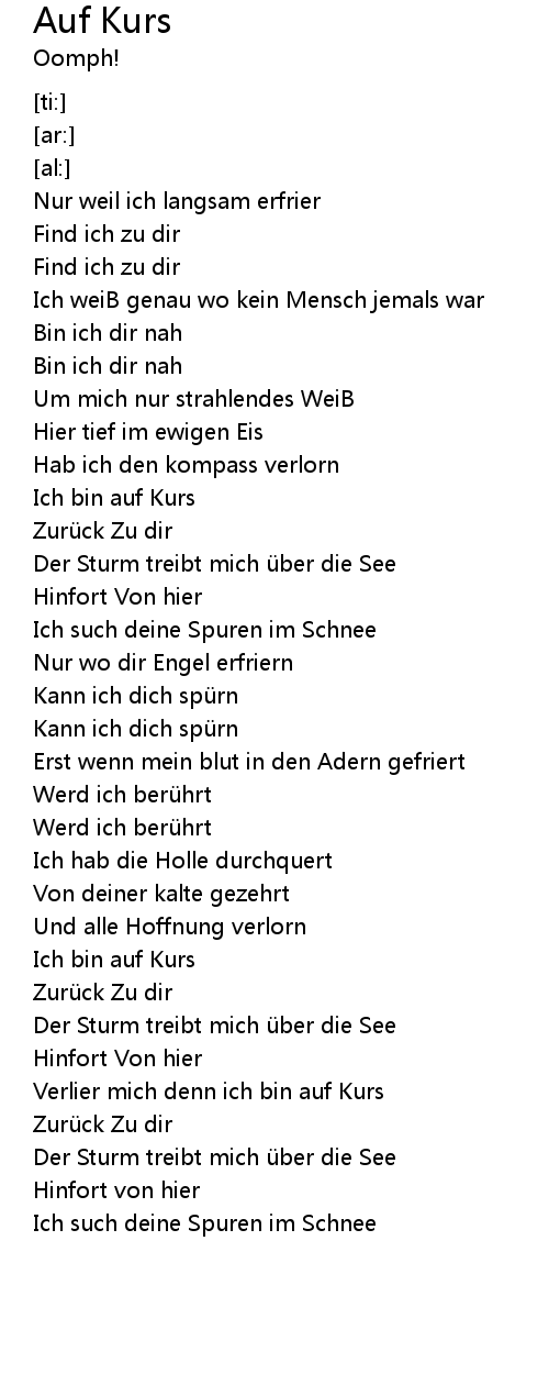 | [01:51.87] | Erst wenn mein blut in den Adern gefriert |