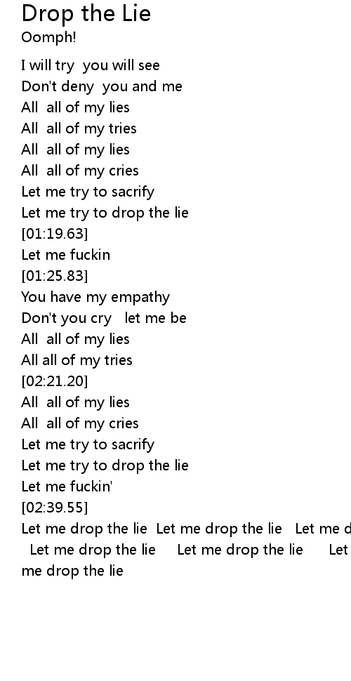 | [03:18.97] | Let me drop the lie Let me drop the lie Let me drop the li e Let me drop the lie Let me drop the lie Let me drop the lie Let me drop the lie |
