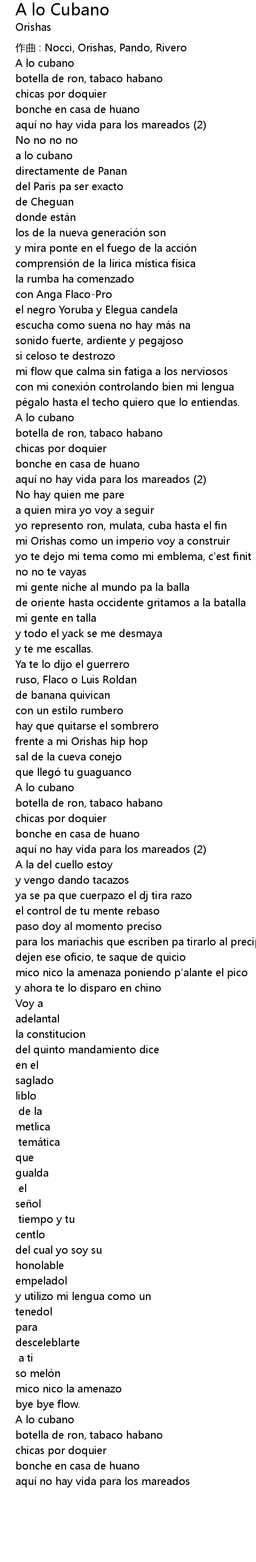 | zuò qǔ : Nocci, Orishas, Pando, Rivero | |