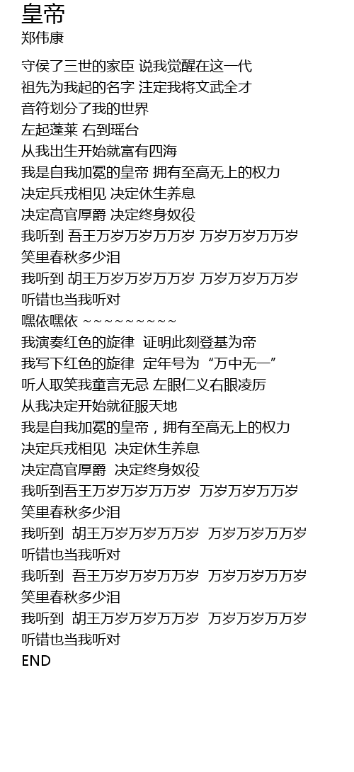 | [00:46.37] | 我是自我加冕的皇帝 拥有至高无上的权力 |