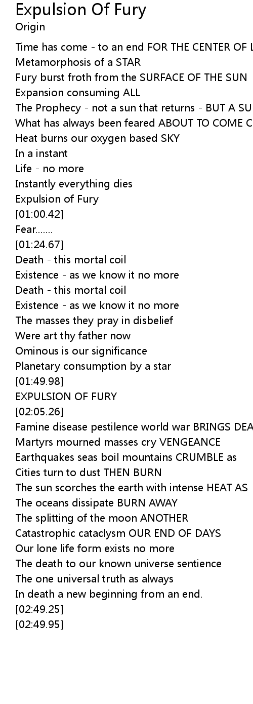 | [02:36.06] | Catastrophic cataclysm OUR END OF DAYS |
