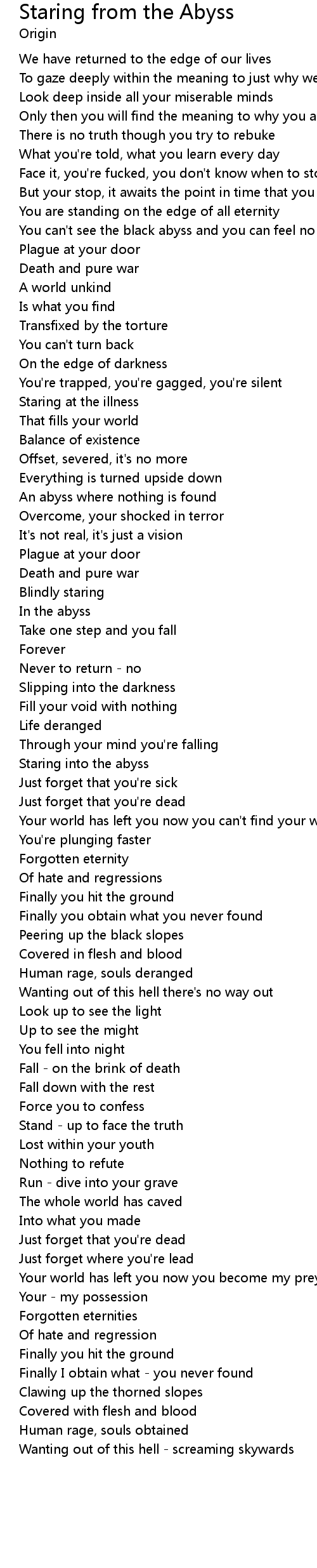 You can't see the black abyss and you can feel no peace |