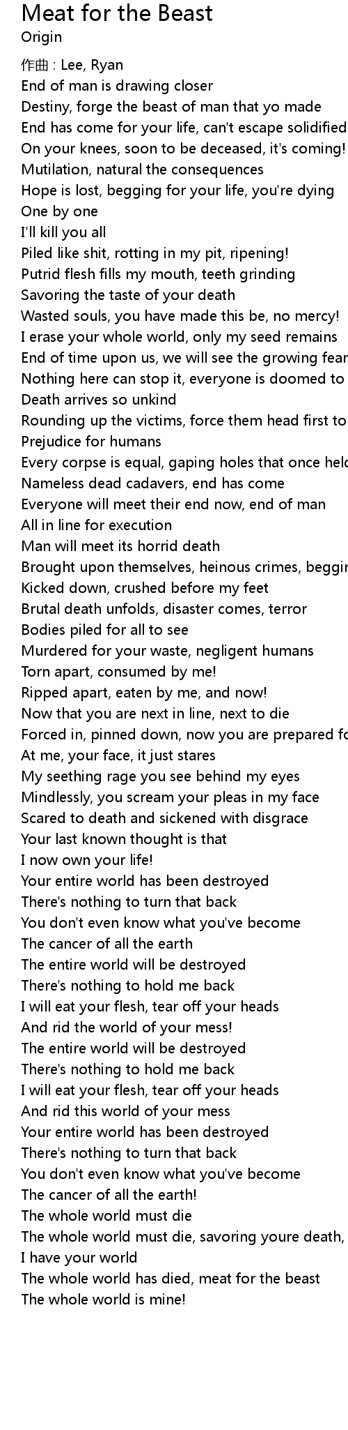 | The whole world has died, meat for the beast | |