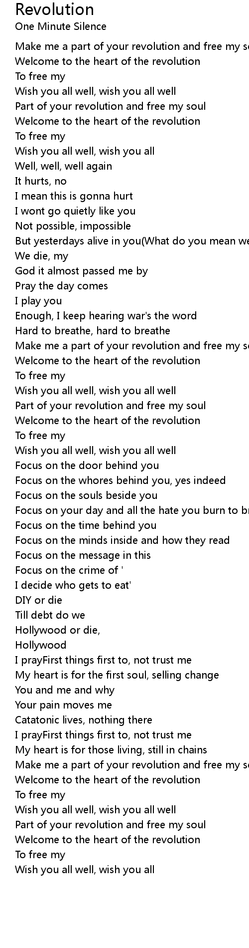 Make me a part of your revolution and free my soul |