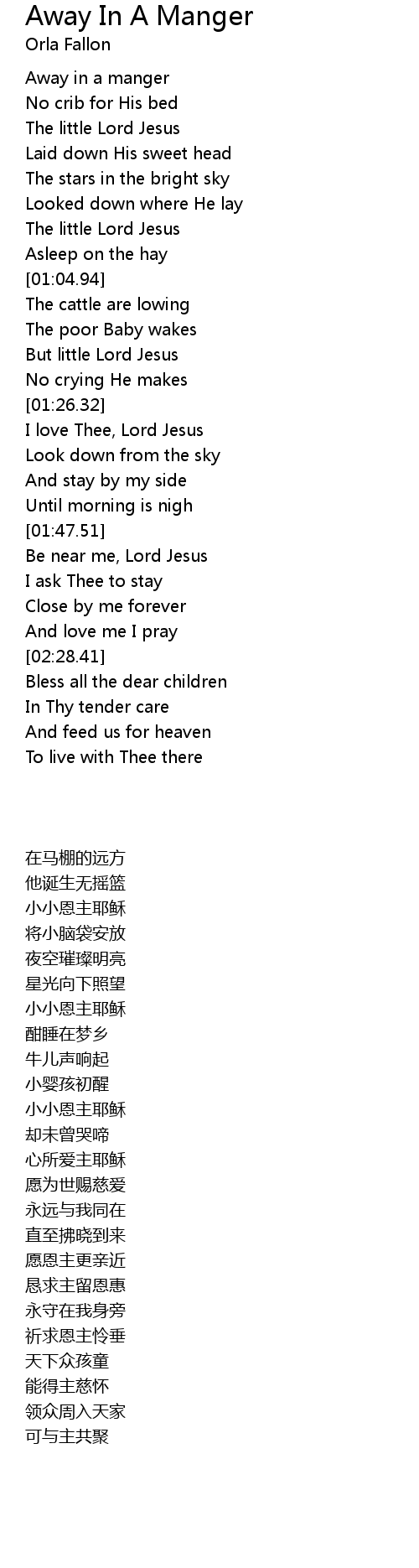 | [00:25.90] | Away in a manger |