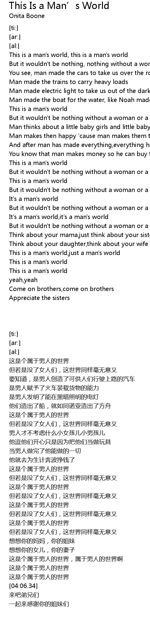 It's a man's world,it's a man's world |