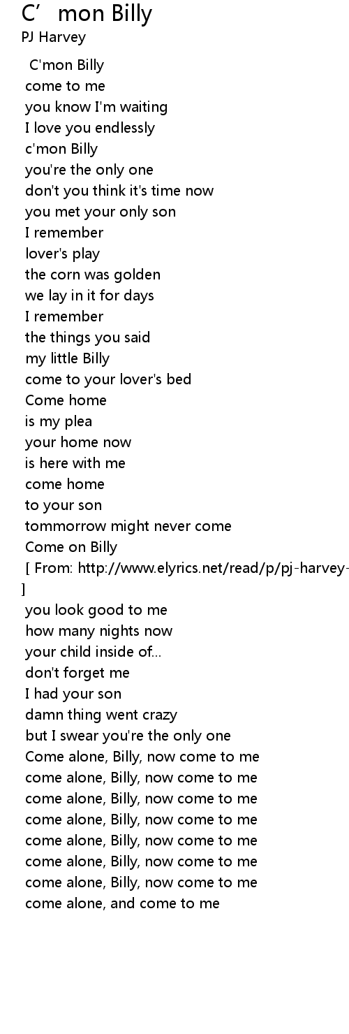 [ From: http://www.elyrics.net/read/p/pj-harvey-lyrics/c_mon-billy-lyrics.html ] |