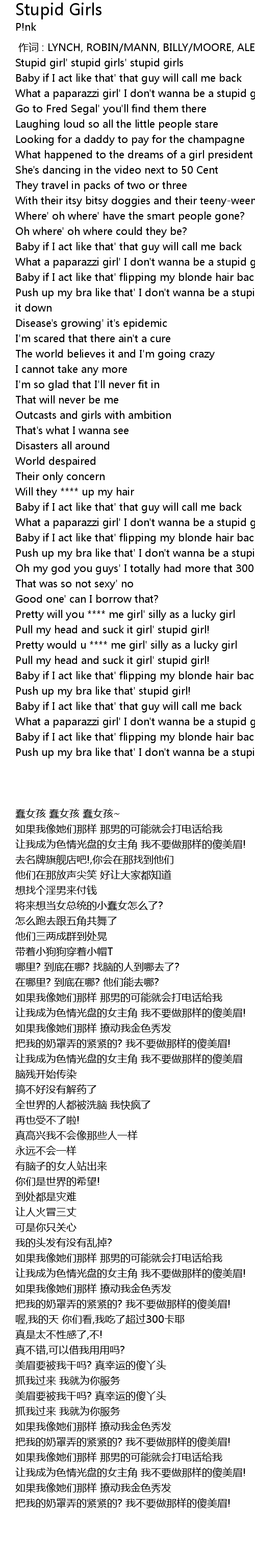 | [01:02.339] | Push up my bra like that' I don' t wanna be a stupid girl |