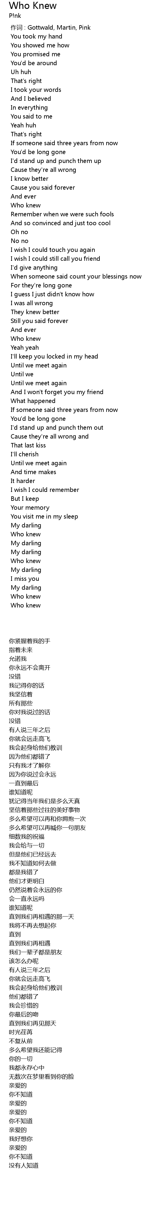 | [00:00.00] | 作词 : Gottwald, Martin, Pink |