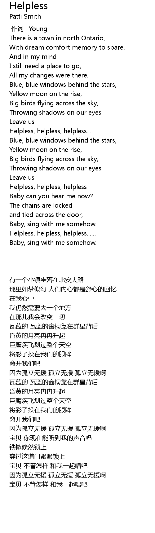 | [02:44.82] | Helpless, helpless, helpless |