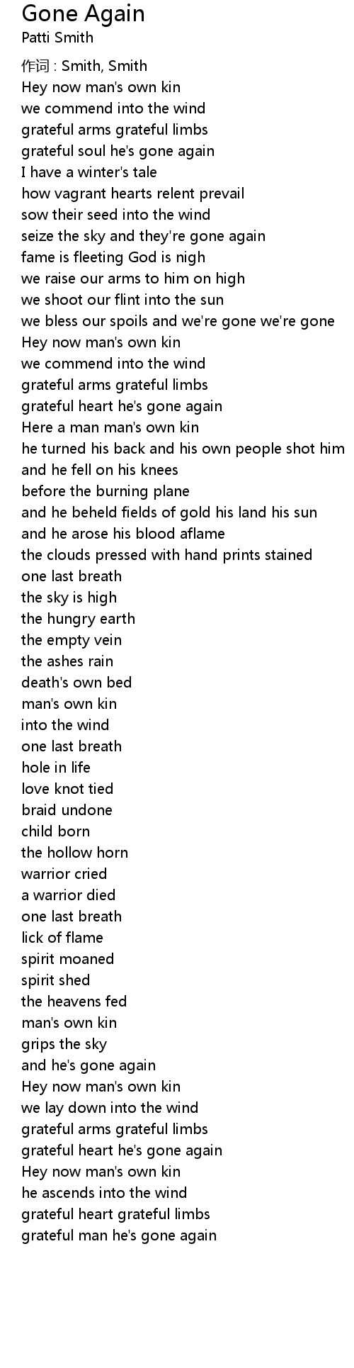 | grateful soul he' s gone again | |