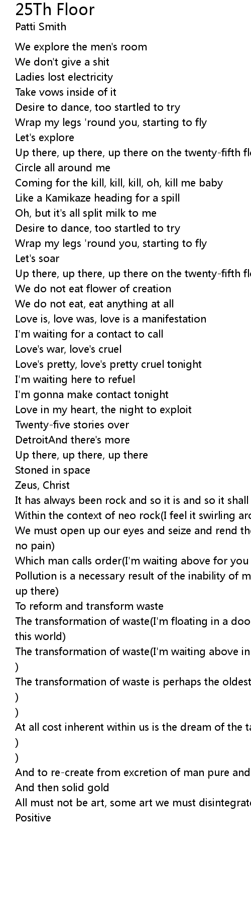 Up there, up there, up there on the twenty-fifth floor |