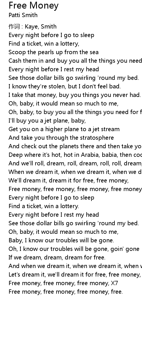 | We' ll dream it, dream it for free, free money, | |