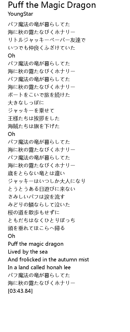 | [03:11.89] | Puff the magic dragon |