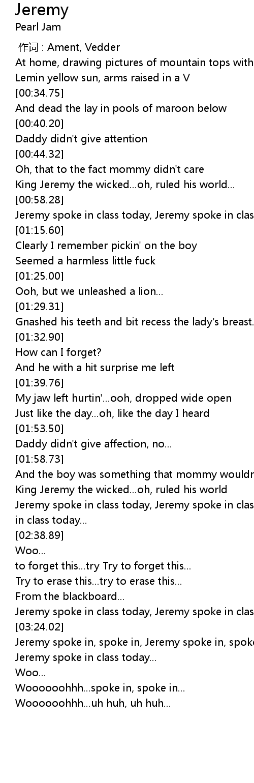 | [03:06.53] | Jeremy spoke in class today, Jeremy spoke in class today... |