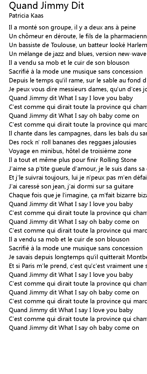 | J' ai caresse son jean, j' ai dormi sur sa guitare | |