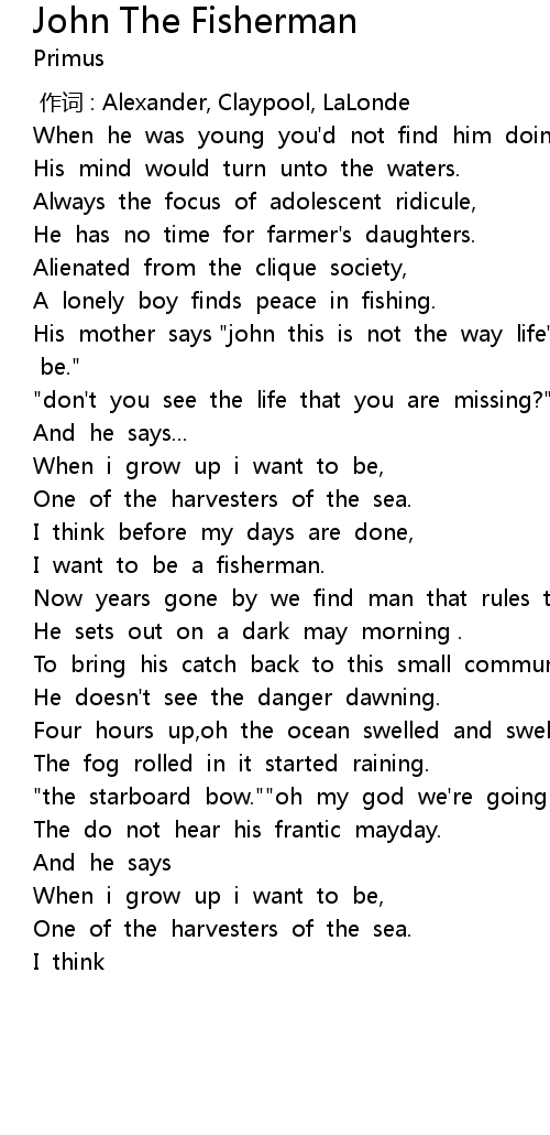 | [00:00.00] | 作词 : Alexander, Claypool, LaLonde |