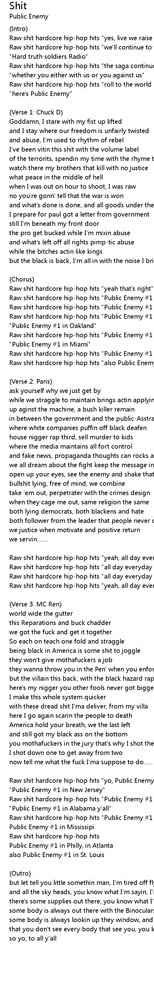 Raw shit hardcore hip-hop hits "also Public Enemy #1 in L.A. boy" |