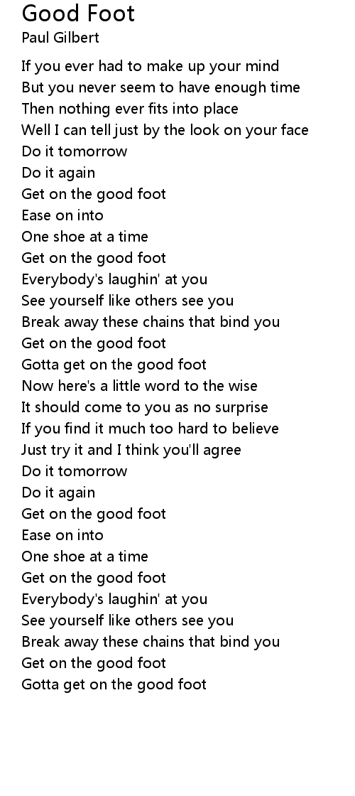 Gotta get on the good foot |