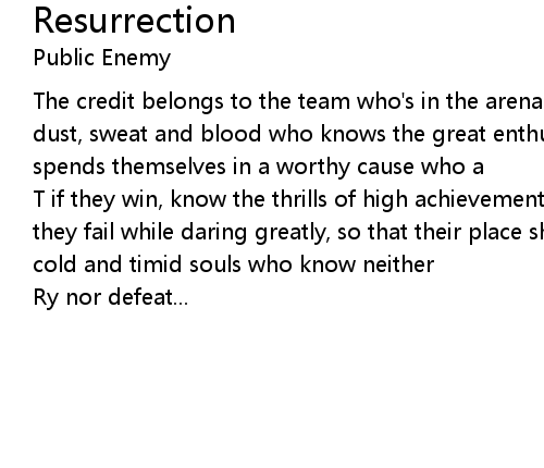| The credit belongs to the team who's in the arena whose faces are marred by dust, sweat and blood who knows the great enthusiasm the great devotions and spends themselves in a worthy cause who a | |