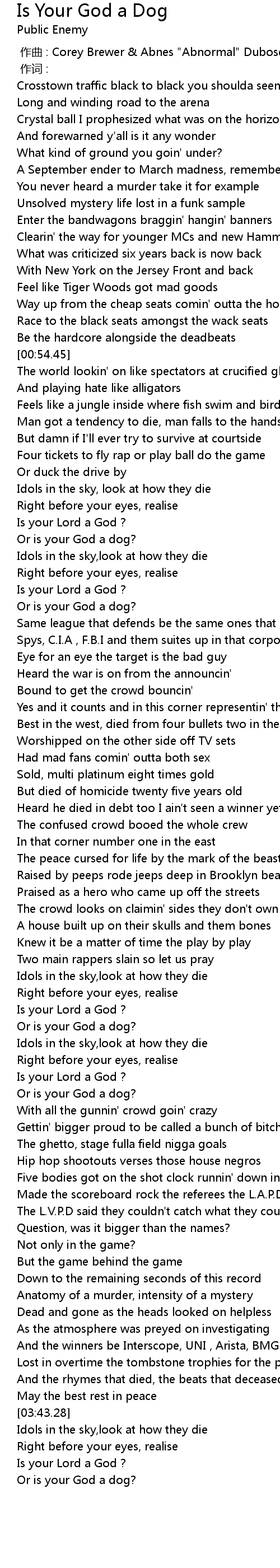 | [01:22.75] | Or is your God a dog? |