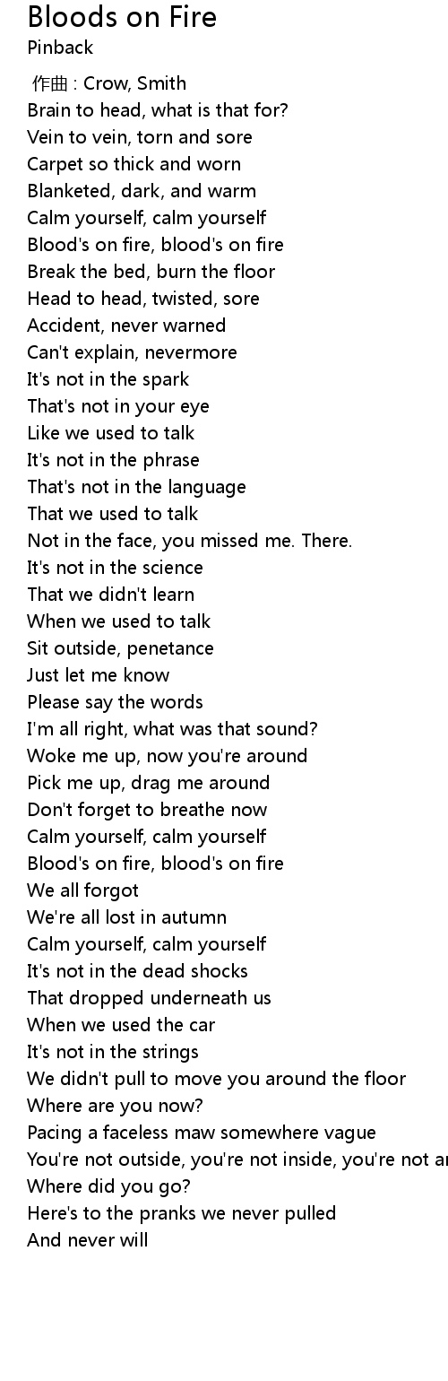 | [02:33.94] | Blood' s on fire, blood' s on fire |